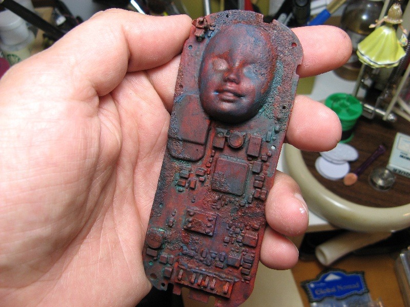 As mentioned before, most of the ‘Timeworn Techniques’ exercises are done on cardboard, but that is not my thing. My alternative … a butchered mobile phone.